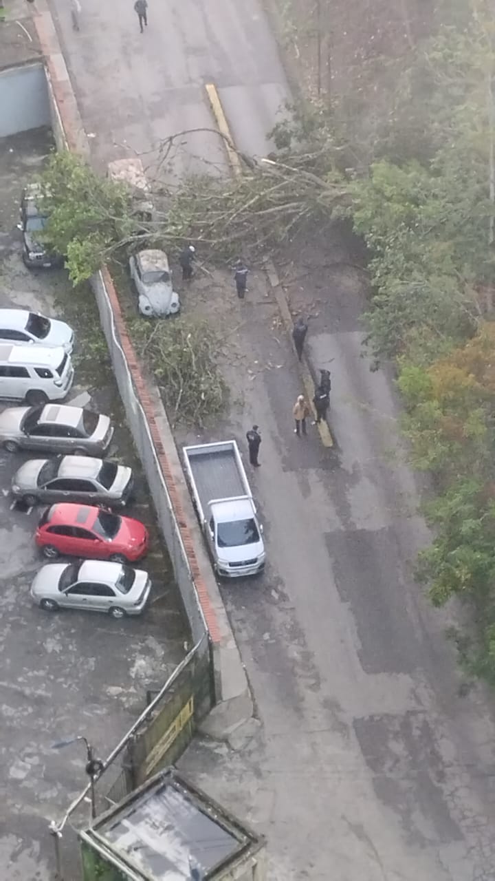 Las lluvias de las últimas horas provocaron la caída de un gran árbol frente a las residencias Bosque Alegre, en San Antonio de los Altos, durante la madrugada de este martes. El desplome bloqueó por completo el acceso hacia El Limón y otros sectores del municipio Los Salias.