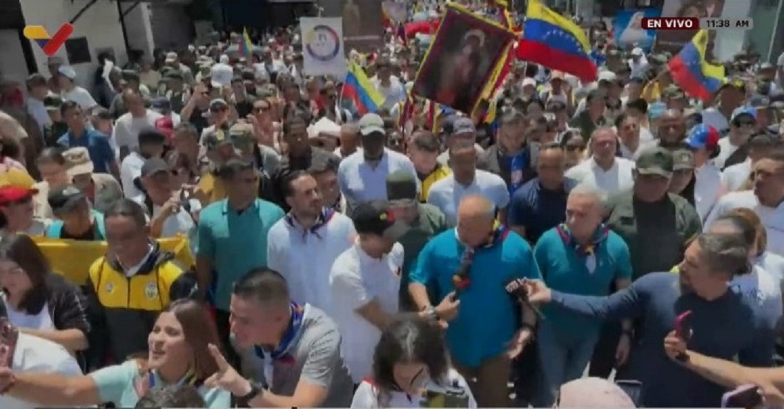 Cabello afirmó que en esta movilización “se levantan las banderas de la paz” y de la exigencia del cese del bloqueo, la persecución económica y las medidas coercitivas unilaterales, las cuales, según señaló, han generado serias dificultades para la población venezolana.