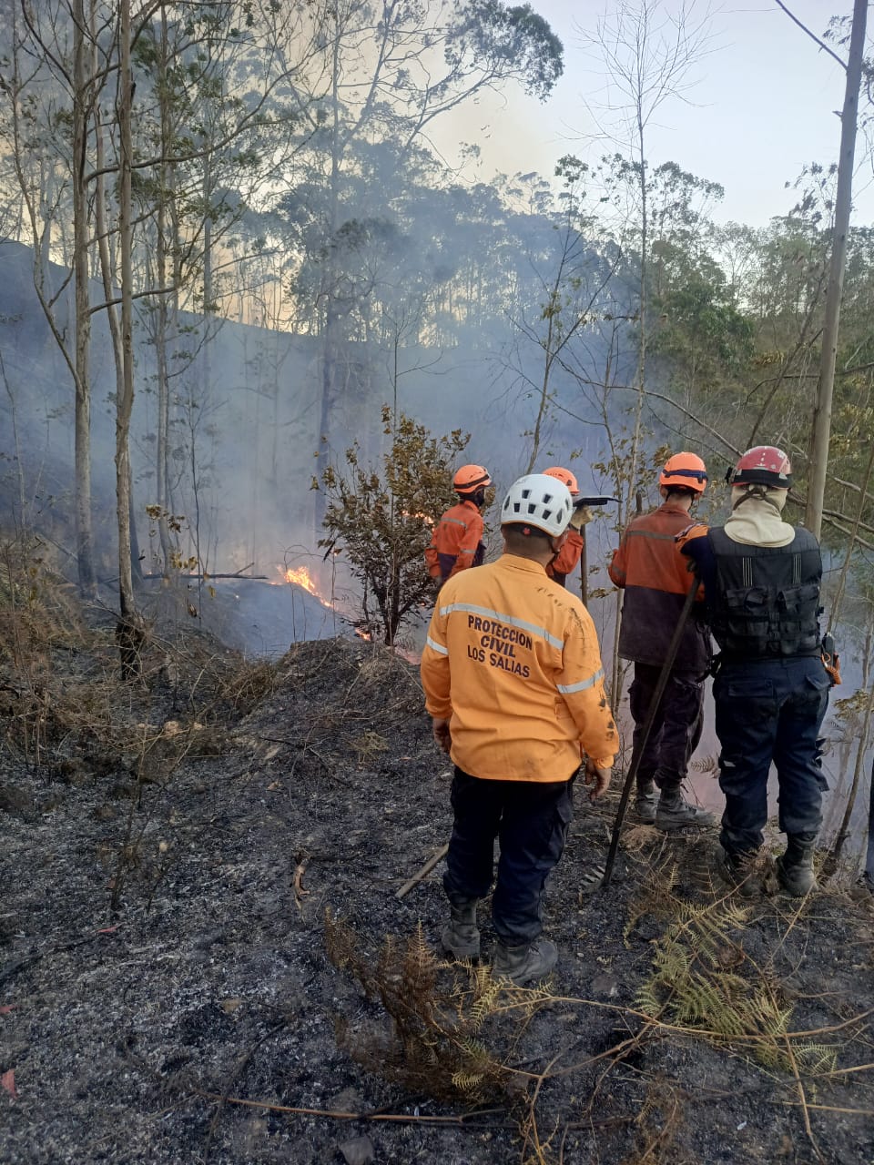 Efectivos de Protección Civil Carrizal, Protección Civil Los Salias, Protección Civil Miranda, junto al Grupo de Rescate Cóndor 1, Brigada 8 y Emergencias Los Salias lograron contener el incendio de vegetación que la tarde del domingo arrasó con varias hectáreas en el sector La Fragua del municipio Los Salias.