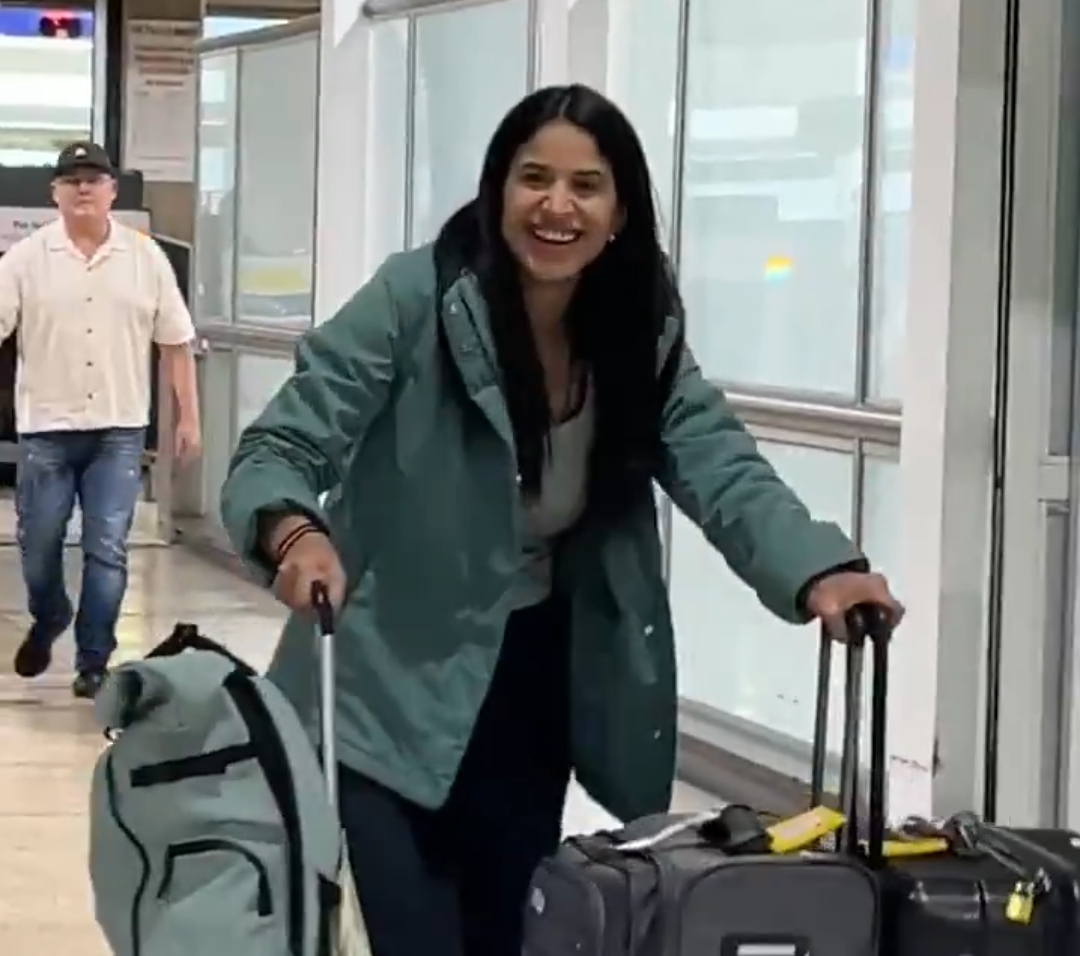 La defensora de derechos humanos Sairam Gabriela Rivas ingresó al país la mañana de este domingo por el Aeropuerto Internacional de Maiquetía, donde se reencontró con su pareja, el activista Jesús Armas, recientemente liberado tras permanecer detenido por motivos políticos.