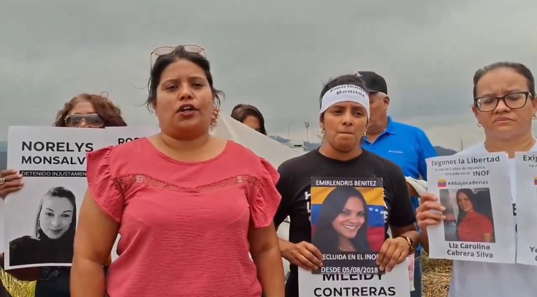 Misler afirmó que los funcionarios intentaron desalojar a los asistentes del lugar. “Hoy en la convocatoria por la libertad de las presas políticas en Los Teques, en el centro de la Crisálida, pero también con familiares del INOF, los efectivos de la Guardia Nacional que custodian el centro de reclusión nos exigían retirarnos del sitio, que estuviéramos a 500 metros porque esto era zona militar”, señaló.