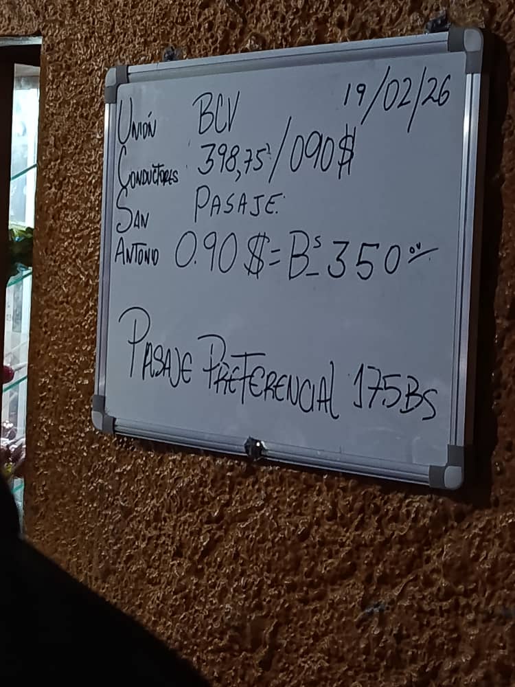 La mañana de este jueves #19Feb, la tarifa general se ubicó en 398,75 bolívares, equivalente a 0,90 dólares según la tasa oficial del Banco Central de Venezuela (BCV), mientras que el pasaje preferencial se fijó en 175 bolívares.