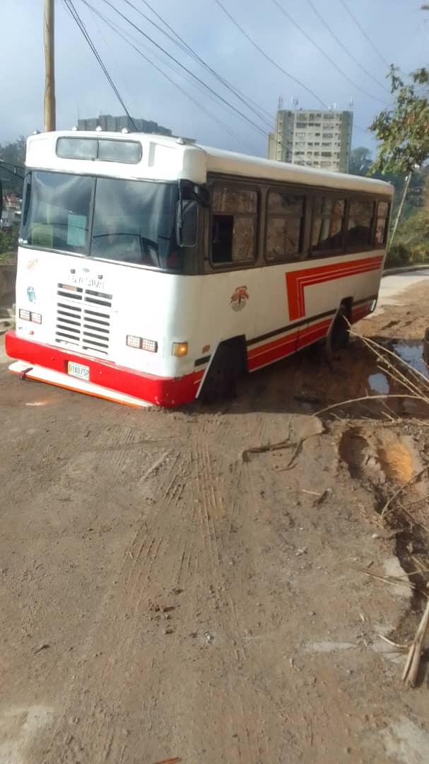 Un autobús quedó atrapado la mañana de este domingo en uno de los huecos que se han formado en la calle que conecta el sector Pueblo con El Sitio, en San Antonio de los Altos.
