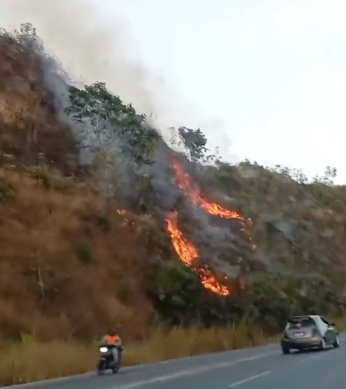 La tarde de este martes, conductores que transitaban por la carretera Panamericana alertaron sobre un foco de llamas en el tramo que conecta Las Tejerías con Los Teques, justo antes de la entrada del antiguo Club Cumbre Azul.