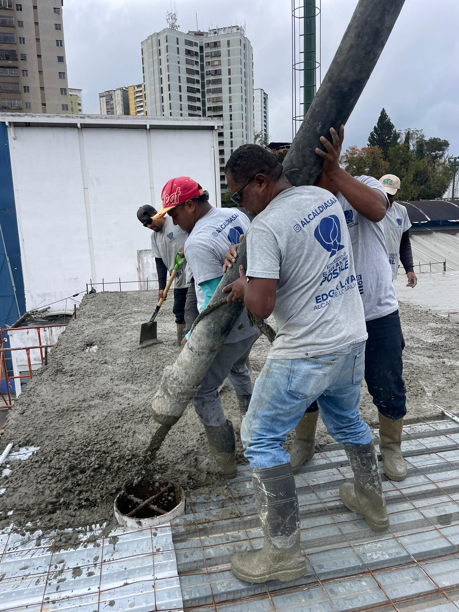 La Dirección de Ingeniería de Los Salias ejecutó este miércoles el vaciado de parte de la loza de concreto del gimnasio vertical ubicado en el Complejo Recreativo Cultural y Deportivo del municipio.