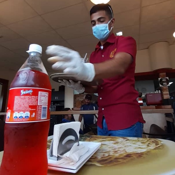 Los restaurantes también están cumpliendo con los protocolos preventivos, en la panadería Paladares, ubicada en La Rosaleda, el personal utilizaba tapabocas está tarde.