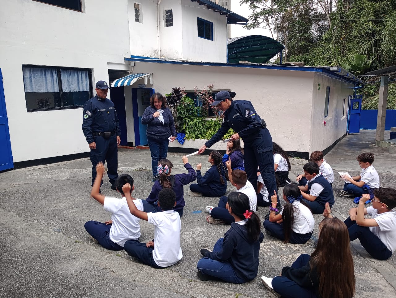 La actividad se desarrolló en la U.E.C. Enrique María Dubuc, donde los funcionarios ofrecieron prácticas y orientación a los patrulleros escolares. La jornada contó con el acompañamiento de Sandra León, coordinadora interna del programa en la institución.