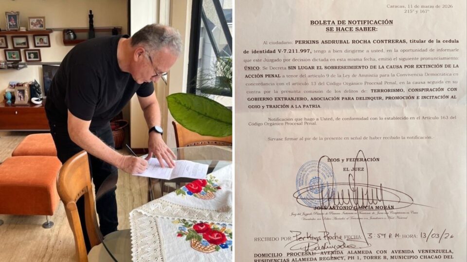 «A las 3:59 de la tarde del día de hoy, viernes 13/03/2026, he sido notificado de una decisión dictada por el Juez Jose Antonio García Moran, en nombre del Tribunal Especial Primero de 1era Instancia en funciones de Juicio con Competencia en casos vinculados con delitos asociados al Terrorismo. En ella se comunica la declaratoria “Sin Lugar” del Sobreseimiento de la Causa que por Extinción de la Acción Penal, dentro del marco de la Ley de Amnistía, solicité a través de mi abogado, Omar Mora, el día 24 de febrero pasado. En consecuencia, dicho Juez, Jose Antonio García Moran, me niega el beneficio constitucional de la Amnistía porque considera que me encuentro dentro de los supuestos legales de exclusión de este beneficio, previstos en el art 9 de la Ley de Amnistía para la Convivencia Democrática, promulgada el 19/02/2026», escribió Rocha en su cuenta oficial en la red social X.