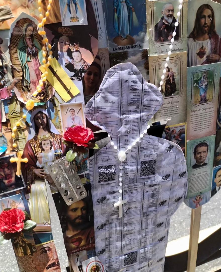 De acuerdo con la curadora, la instalación «Sopa, Seco, José Gregorio» de Susan Applewhite “se presenta como una celebración contemporánea de esta veneración popular. A través de metáforas visuales y materiales reciclados —como blísteres de medicinas y radiografías—, la artista construye un imaginario en el que tiempos y espacios se conectan, evocando la memoria, la nostalgia, la fragilidad y la identidad”.