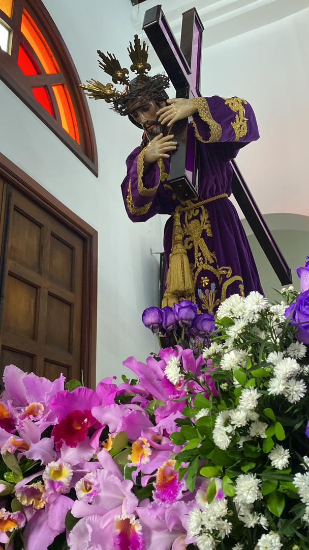 La jornada de donación de flores para la histórica imagen del Nazareno de la Catedral de Los Teques avanzaba la mañana de este martes, en vísperas de la multitudinaria procesión prevista para este Miércoles Santo.
